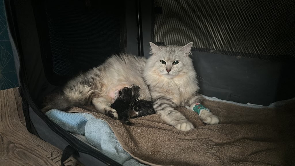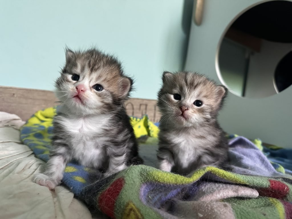Deux chatons sont nés le 16/12/25 par césarienne. Ils sont tous les deux bi métal, la femelle est avec du blanc.