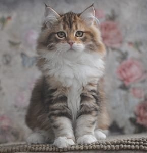 Dyuy est notre première femelle sibérienne, arrivée de Moscou le 28/08/2019. Elle gagnera le Best suprême lors de l’exposition féline réunionnaise de 2019, sacrée plus beau chat de l’exposition.